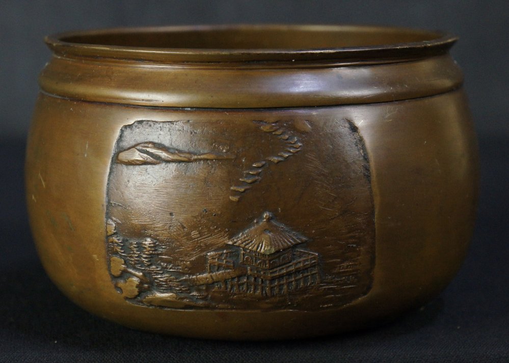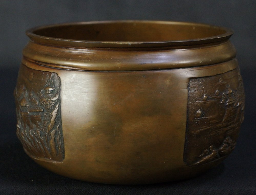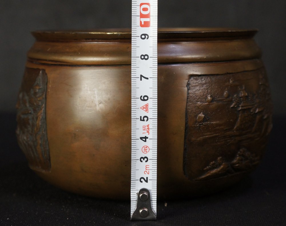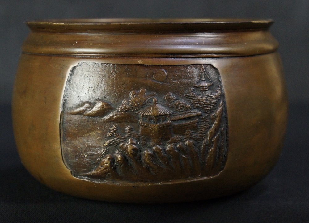 Nice Antique Japanese bronze Koboshi vase, low relief with landscape, nice patina and shape. Good conditions, some wear from usage and time, no fractures, no leaks. Immediately usable.