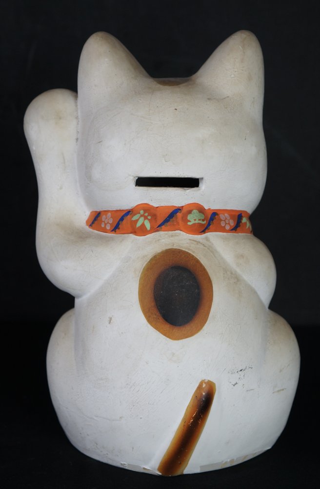 Tokyo cat Maneki Neko Japan lucky money box 1900 vintage ceramic craft.