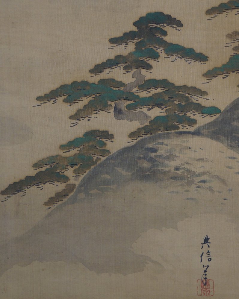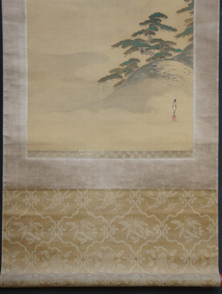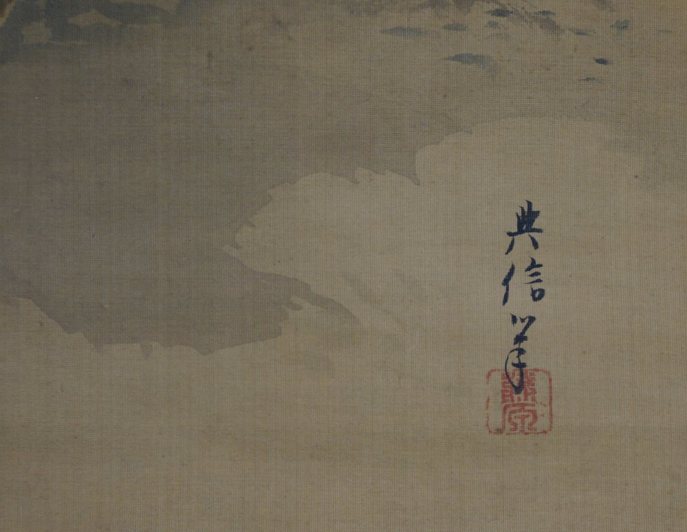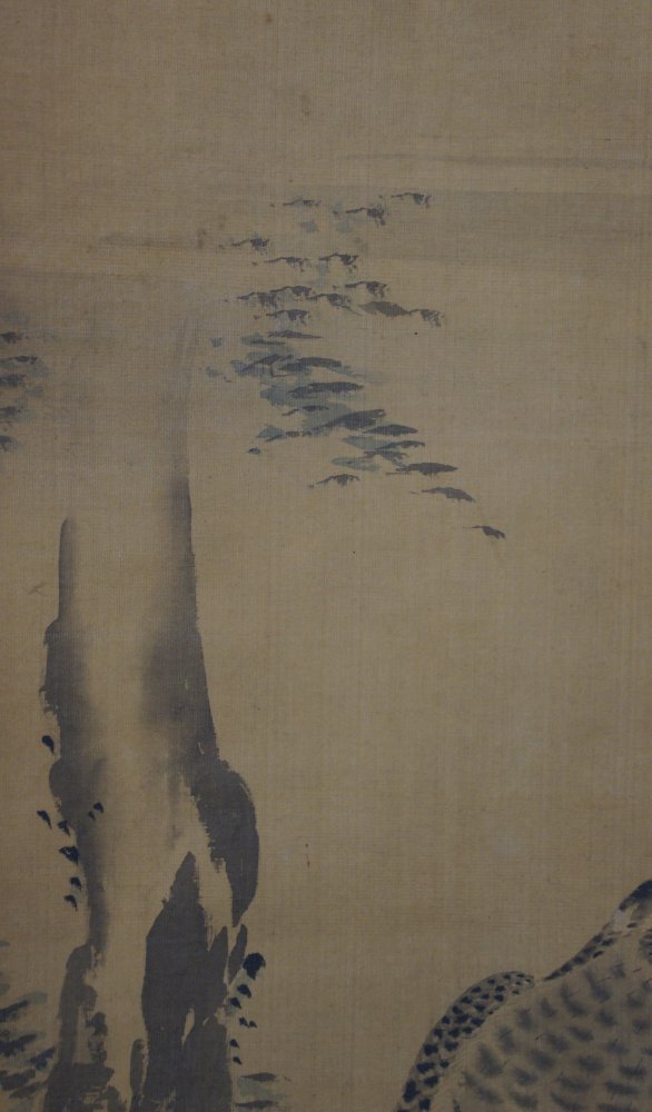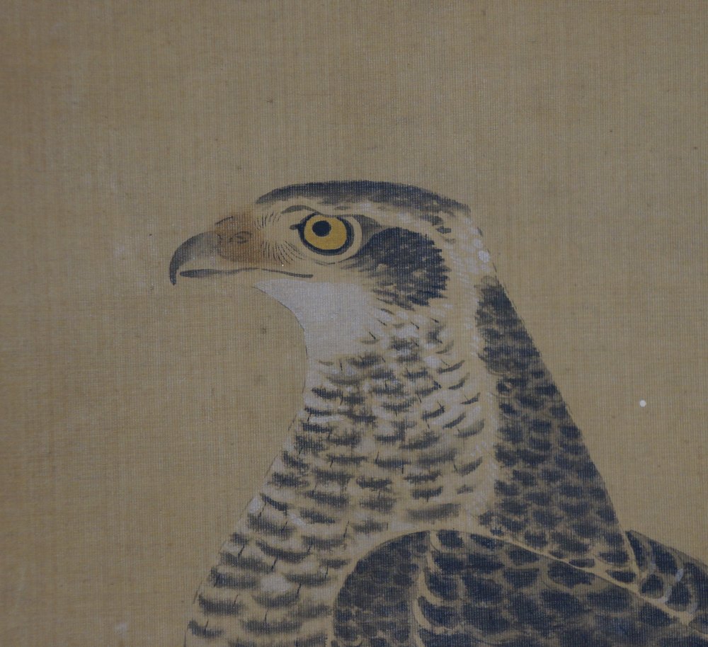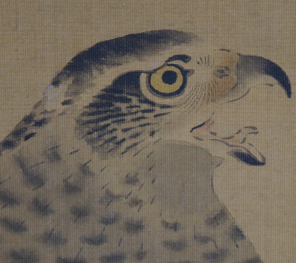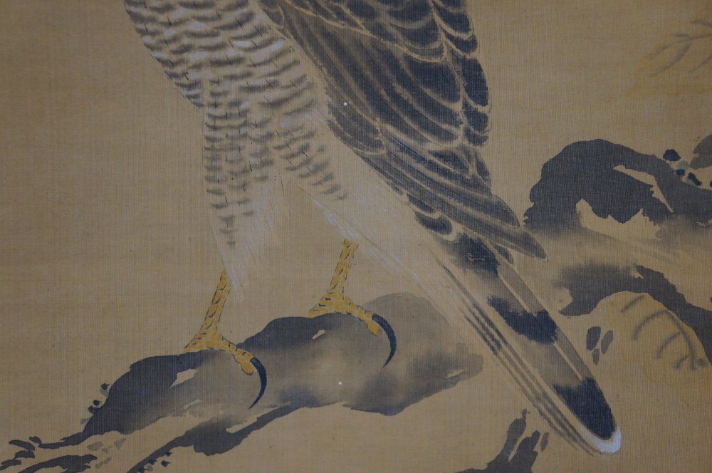 Antique Japanese falcon art scroll Taka painting Kano Michinobu 1760 mid Edo art
