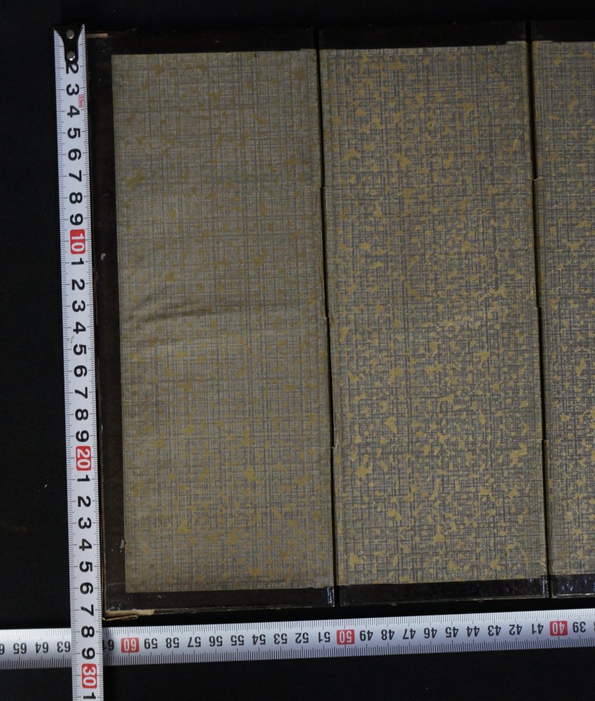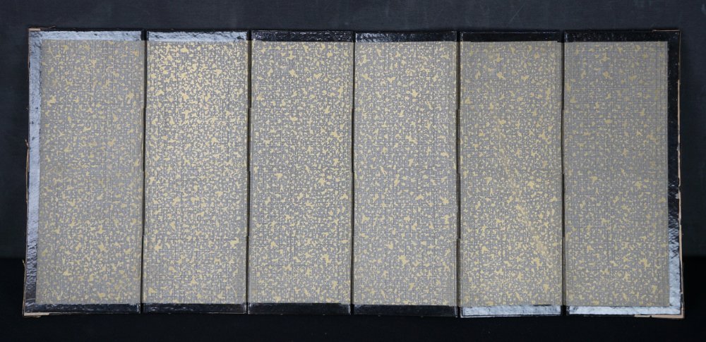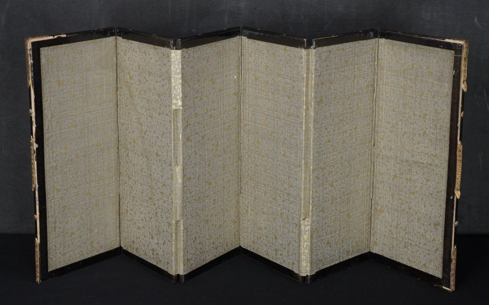 Japanese gold specs Byobu wind screen miniature 6 panel, gpaper over wood frame craft. Poor conditions, ware from usage and time, Wabisabi craft. Immediately usable.