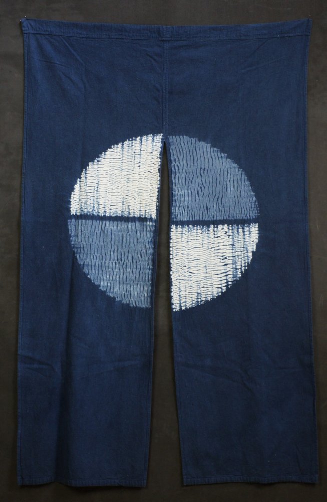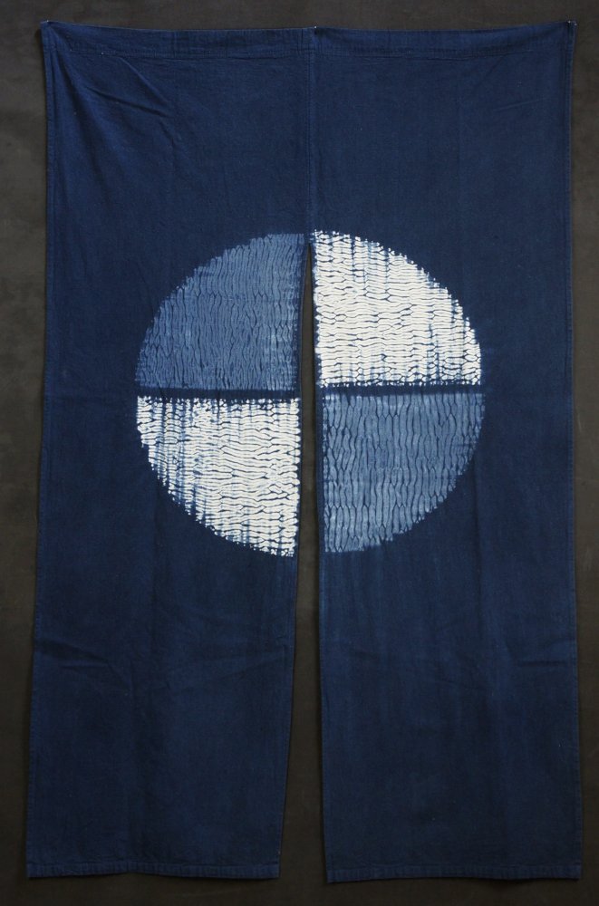 Vintage Noren Japanese Takayama blue dye curtain 1970 Japan full moon craft