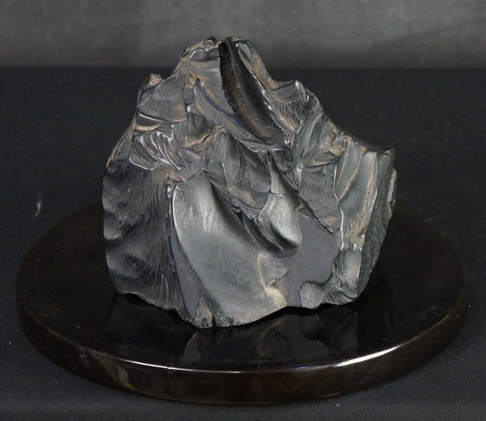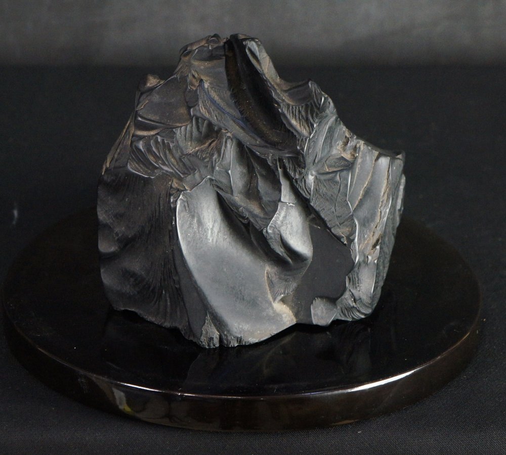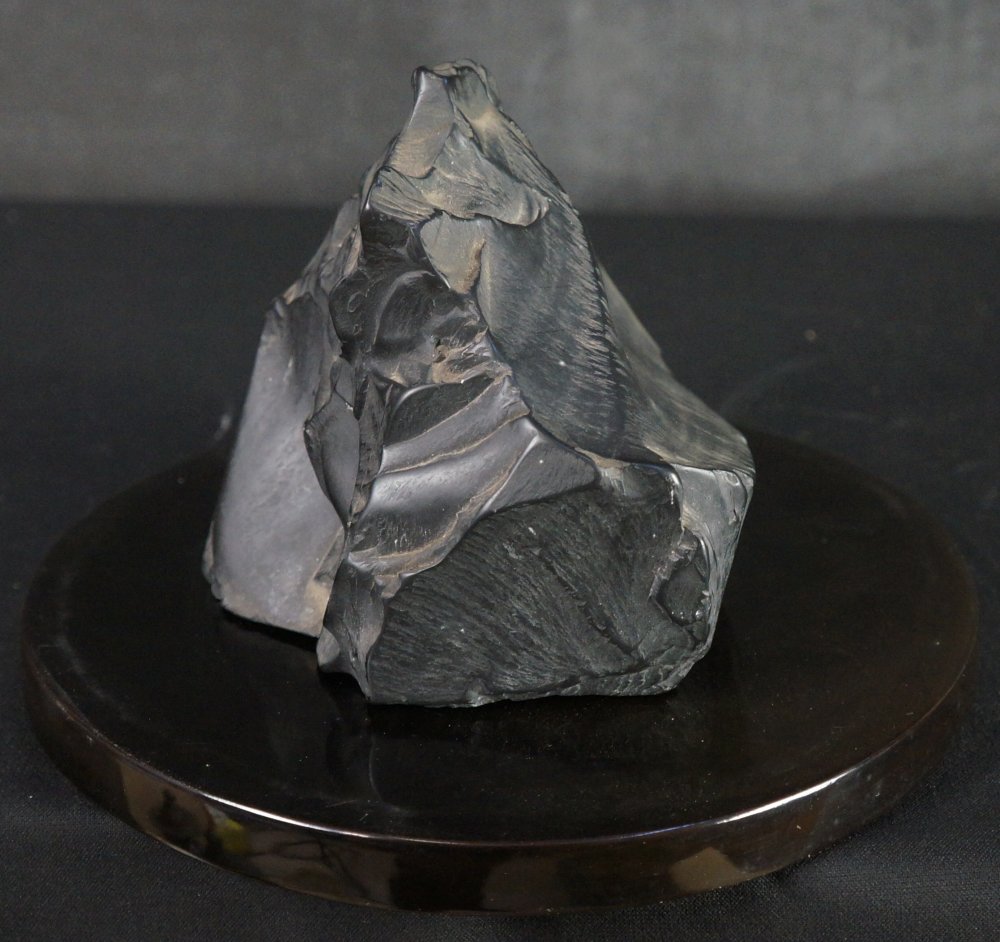 Japanese decorative Suiseki Zen decorative stone Minimalist art, nice shape and pattern, lacquered wood base. Wabisabi Japan interior.