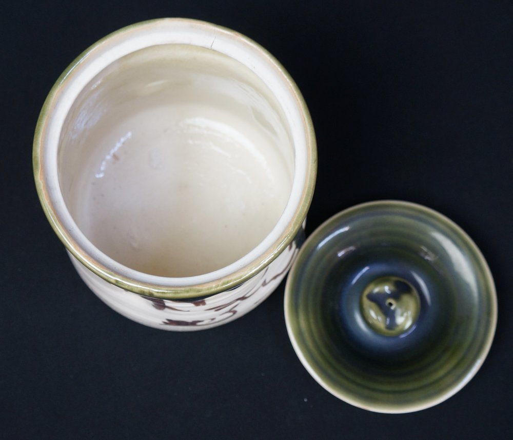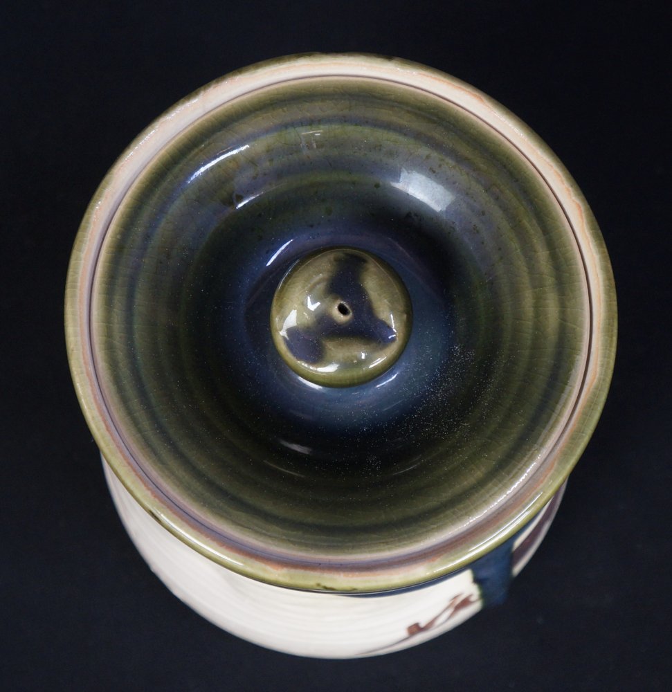 Minimalist Japan Mizusashi ceramic 1970 Oribe kiln master ceramist