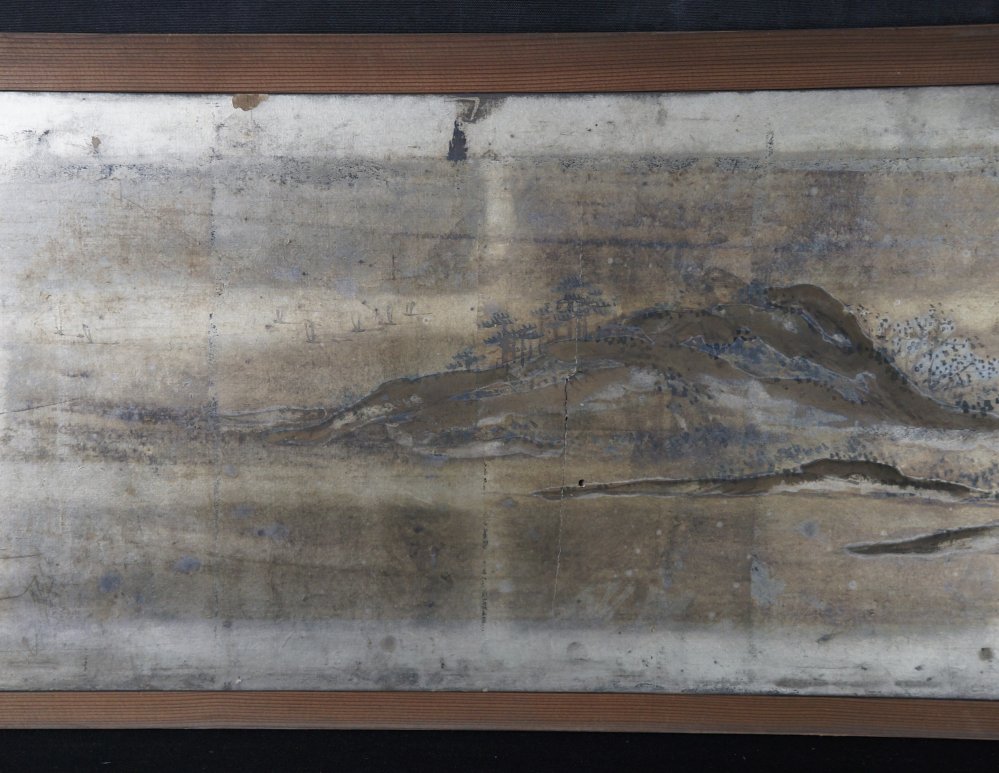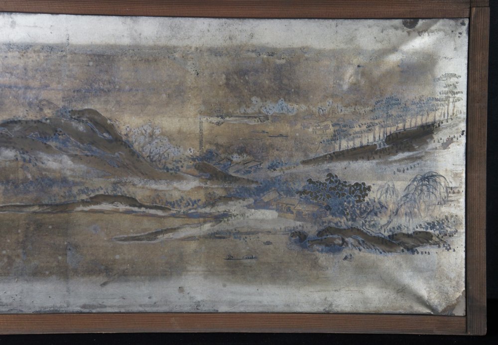 Antique Japanese Zen silver leaf landscape 1800 Wabisabi moon light painting