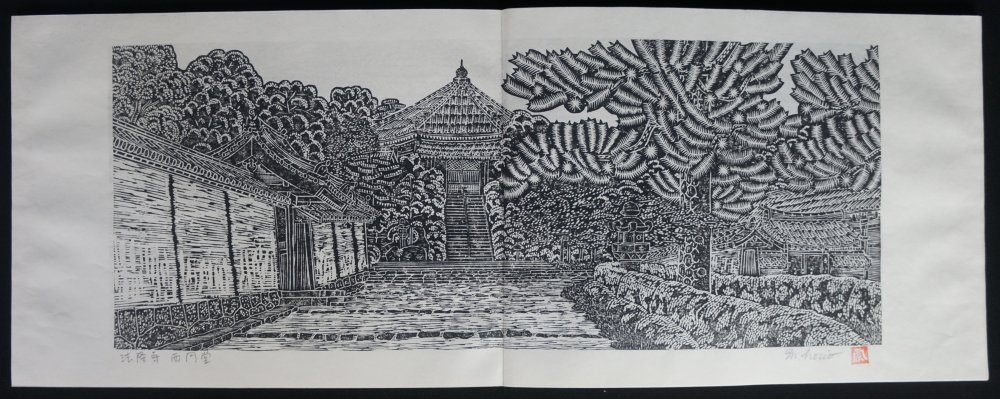 Japanese woodblock print Mokuhan book hand craft 2020 Nara temples