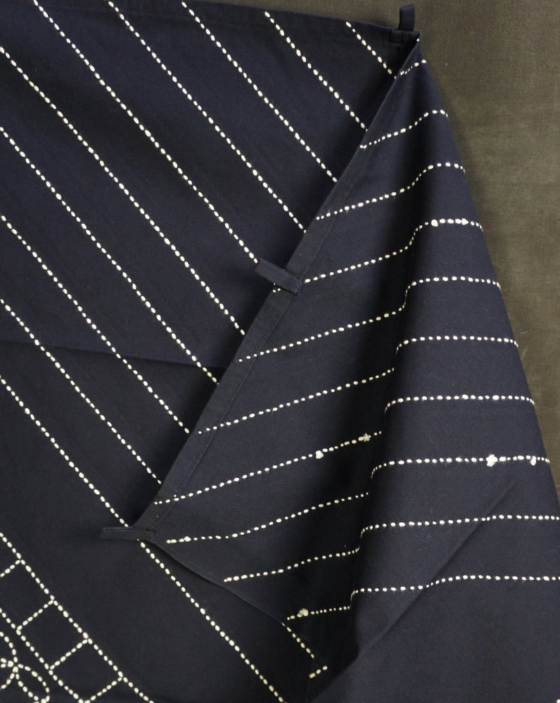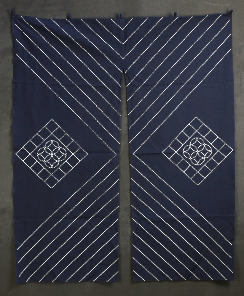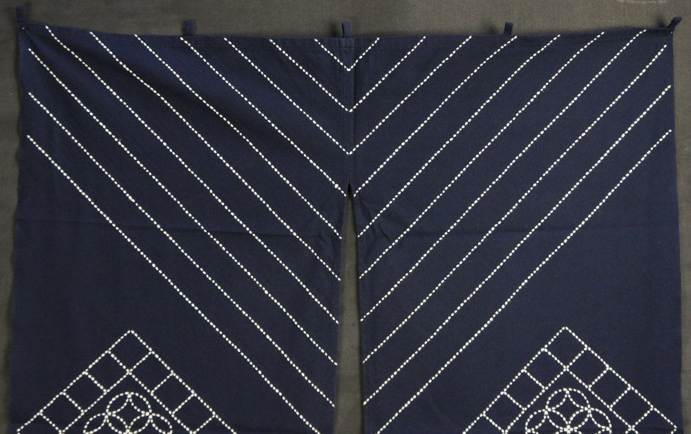 Vintage Noren Japanese Takayama blue dye curtain white rope knots 1970 interior art craft C