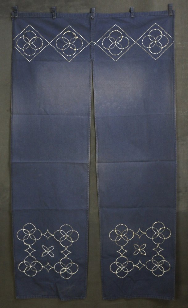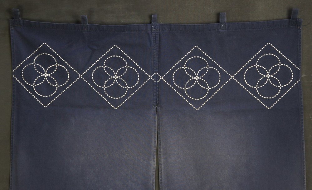 Vintage Noren Japanese Takayama blue dye curtain white rope knots 1970 interior art craft