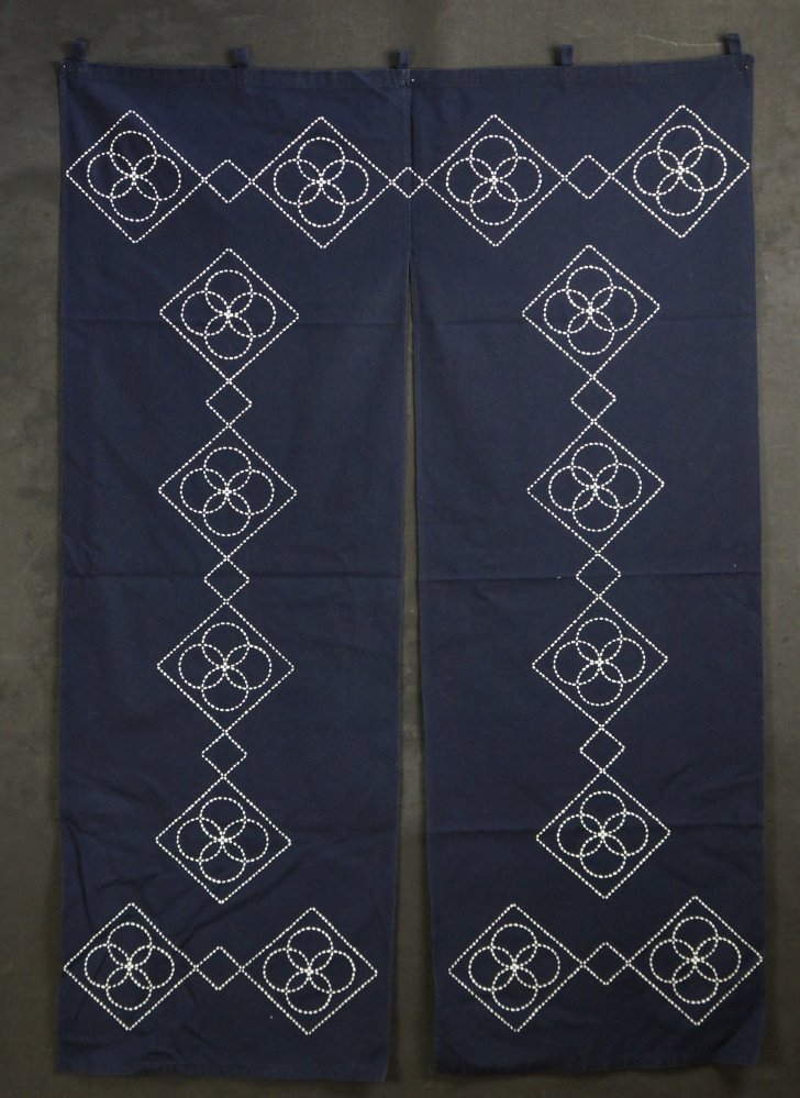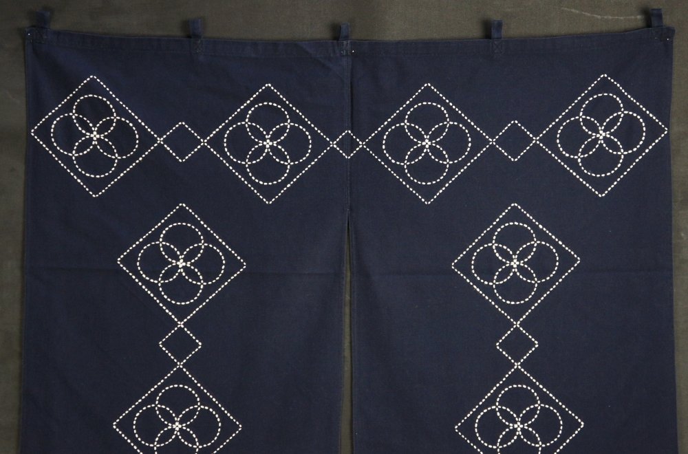 Vintage Noren Japanese Takayama blue dye curtain white rope knots 1970 interior art craft D