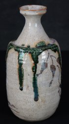 Japan Kabin Oribe ceramic floral vase 1950 Yakimono Japan kiln wear.