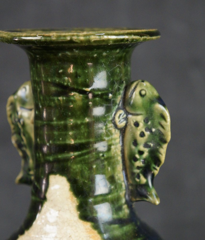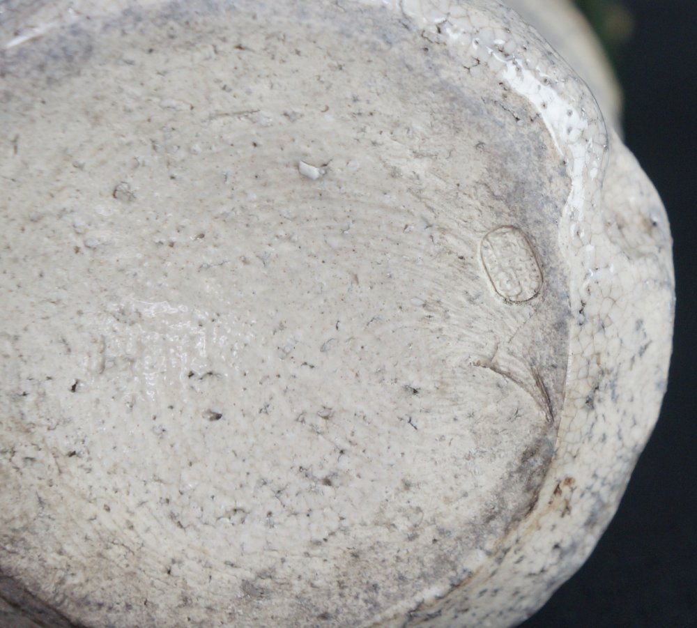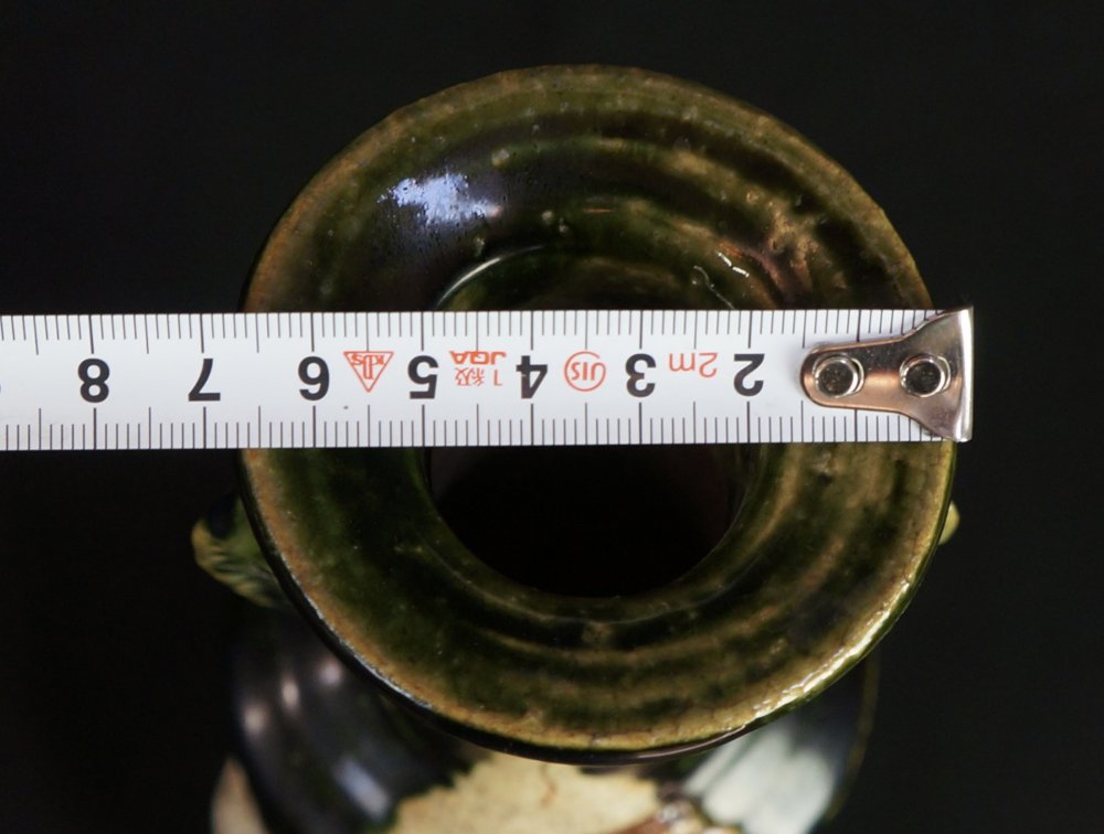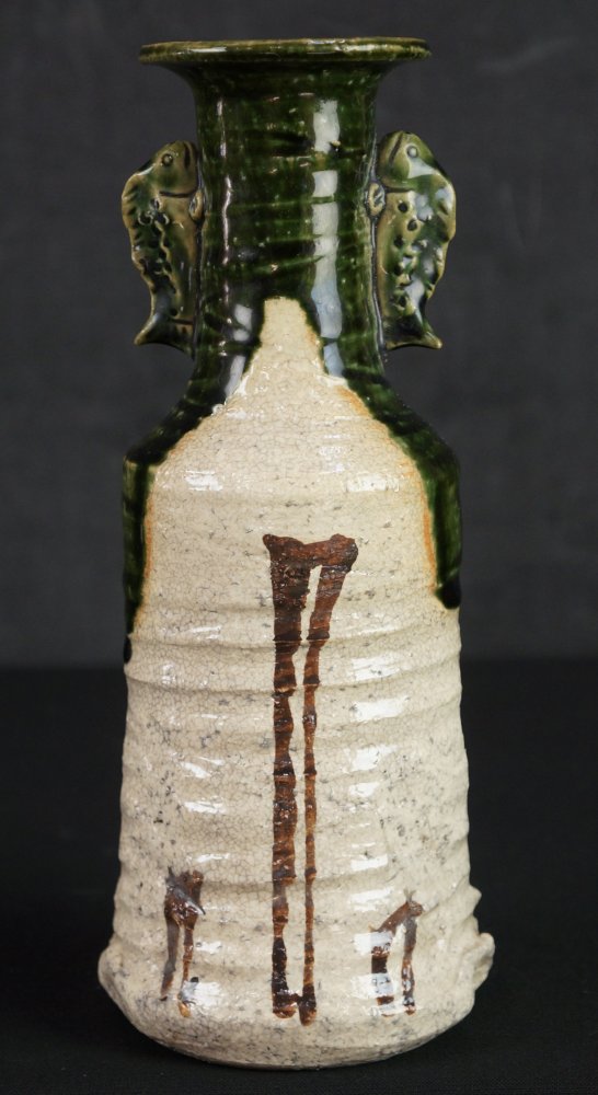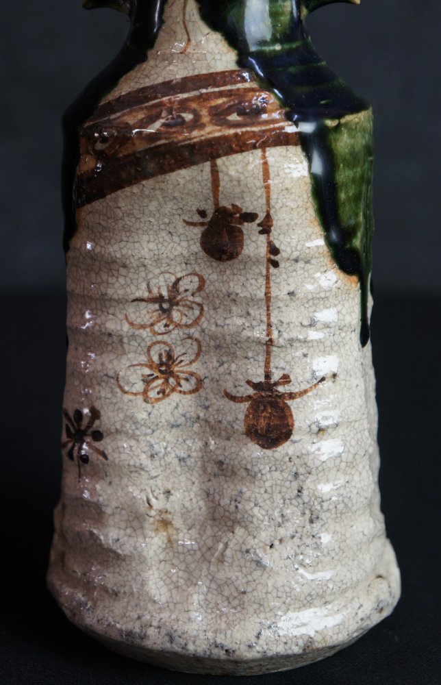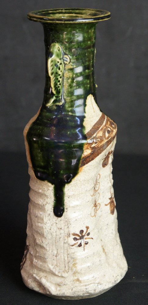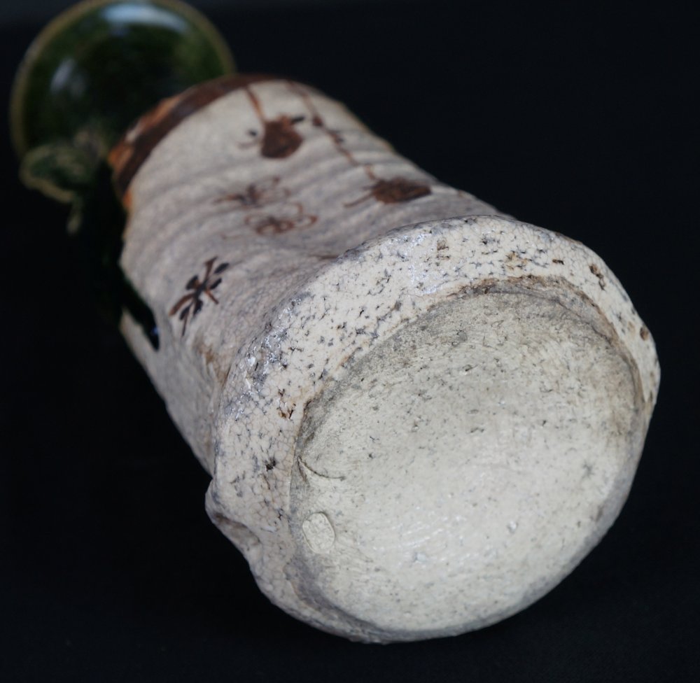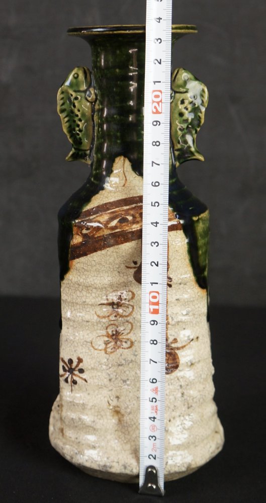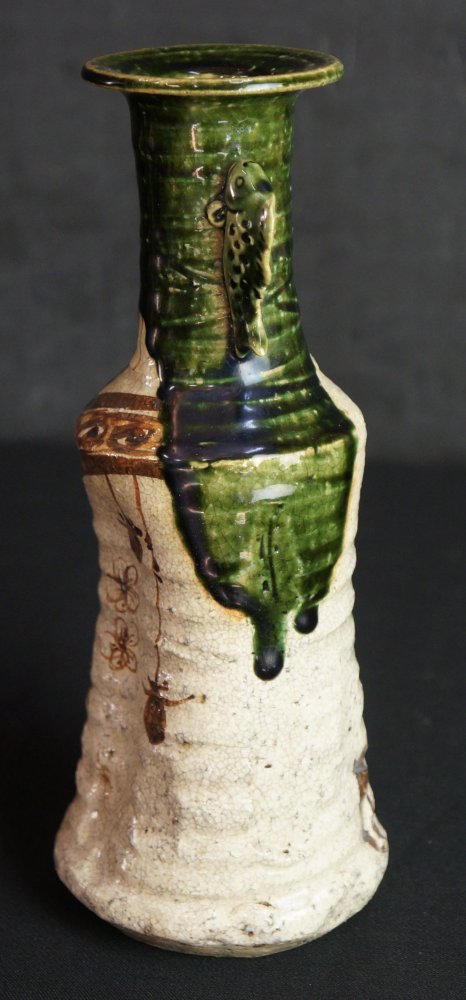 Oribe vase Japanese wood kiln hand art 1900 minimalist pottery Oshigaki motif