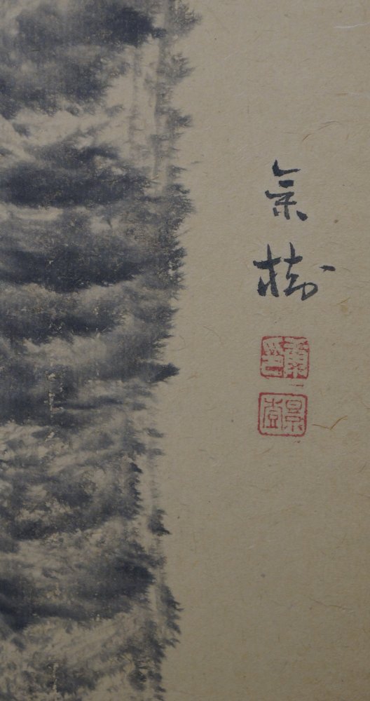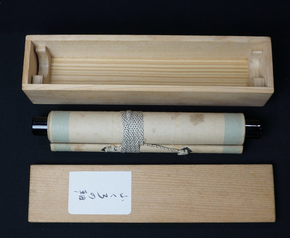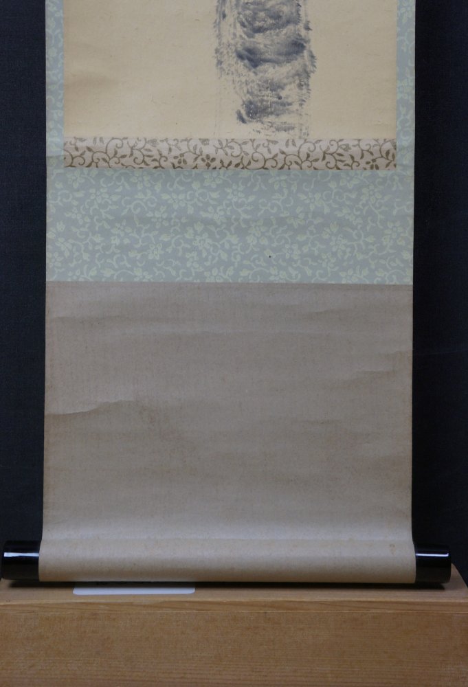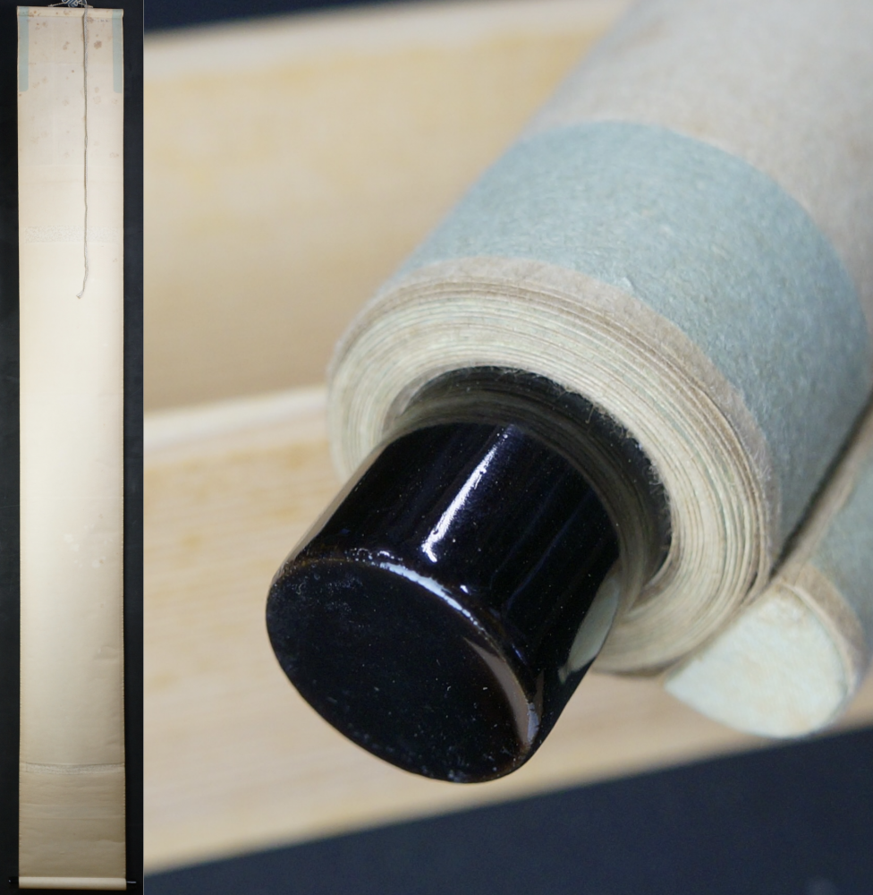 Japanese Zen painting scroll night owl and Sakura cherry blossom, Sumi-e ink art technique on paper. Sealed and signed by artist Imai Keijyu (今井景樹), good conditions, light wear from exposure on top part, immediately usable with protective Kiri wood box.