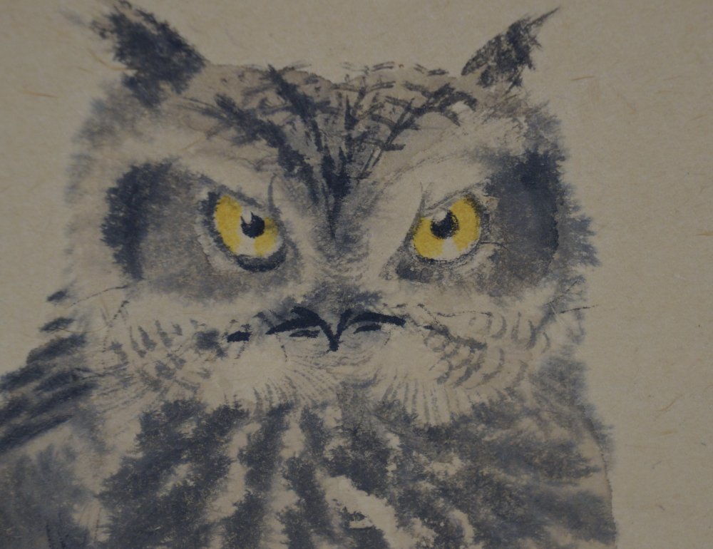 Japanese night owl spring Sakura blossom scroll 1950 Sumi-e ink art