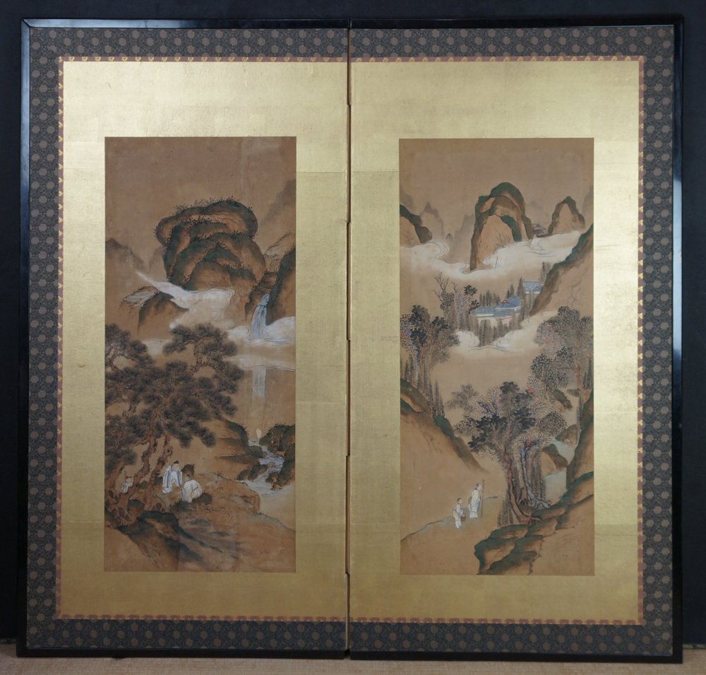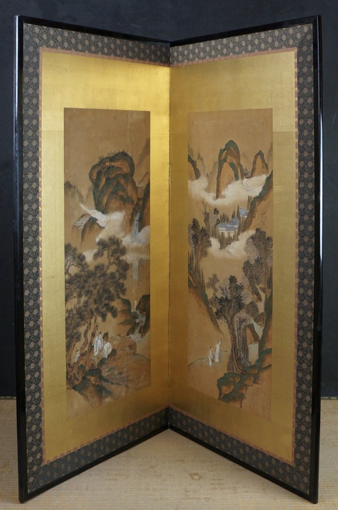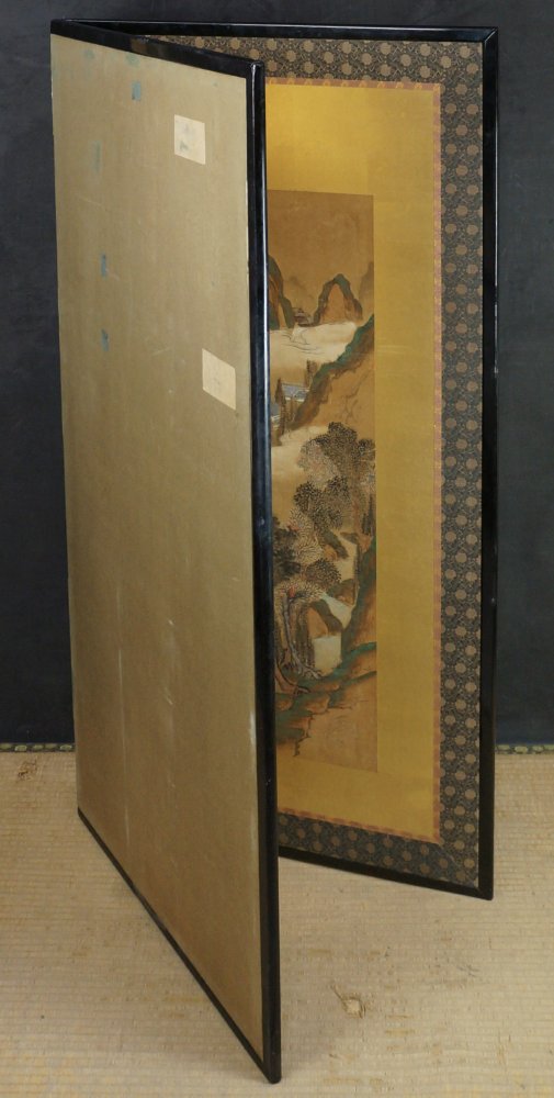 Antique big size Japan landscape painting 1800 Byobu art wind screen.