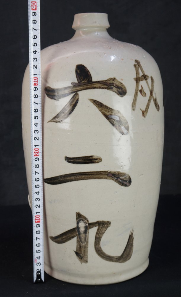 Antique ceramic tall jar Japan Sake Isakaya Tokkuri 1880 kiln craft F