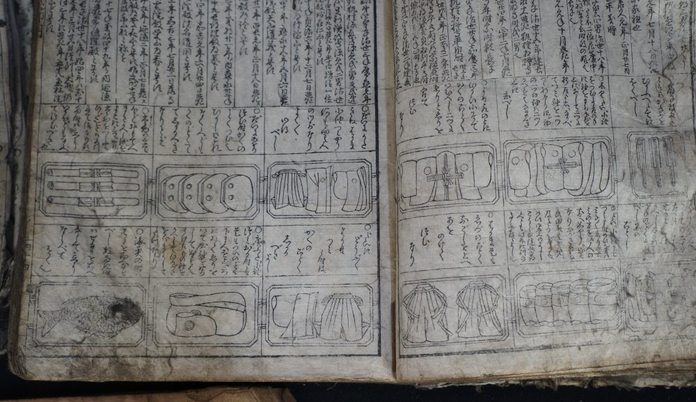 Antique Japanese Samurai woodblock print book 1700 Yoroi armor strategy