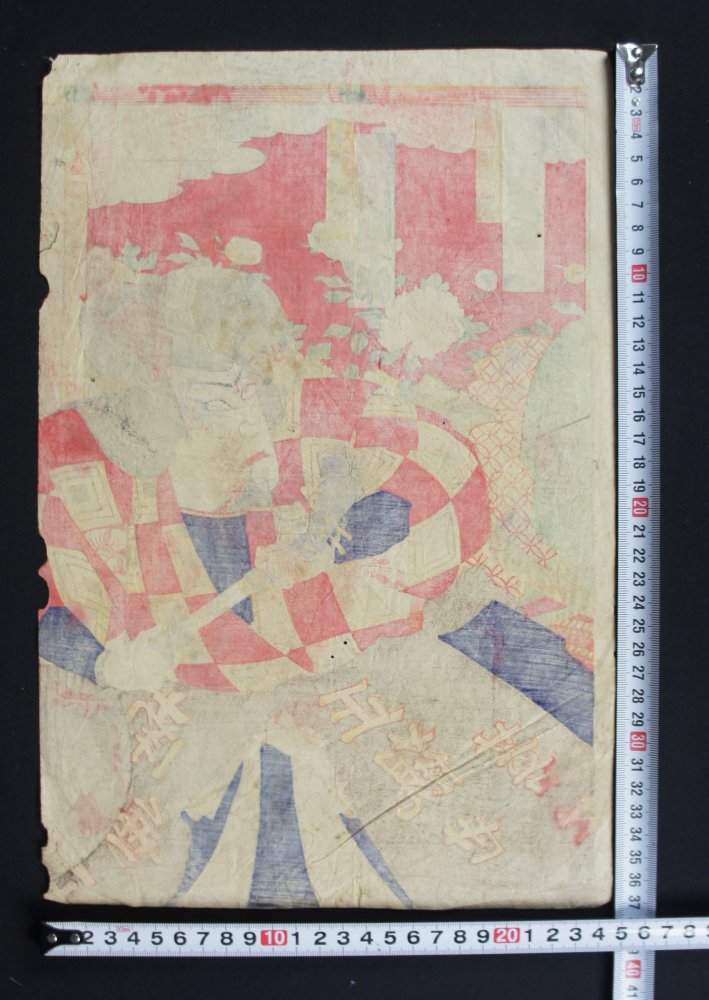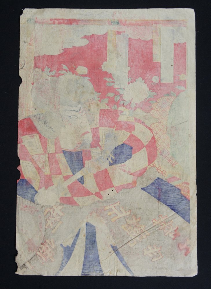 Antique original Japanese wood block print  art made by Kunisada school craft, Samurai character, nice compositions and details for Kabuki theater. Good conditions, some wear from time and  handling. Nice character.