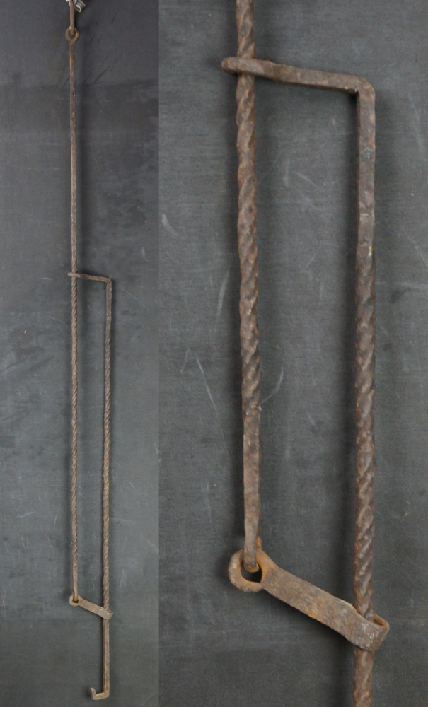 Japan Antique Jizai iron kettle holder Wabisabi minimalist 1800 craft Irori Shirakawa