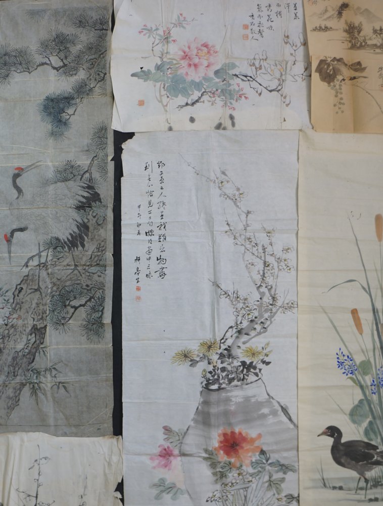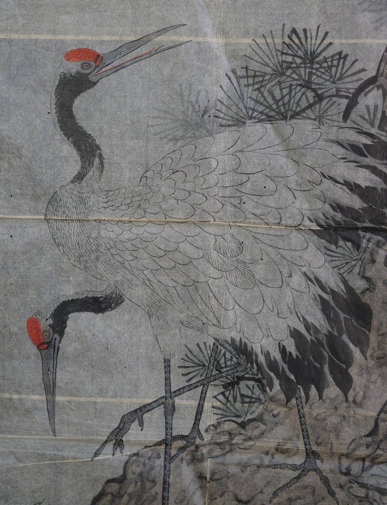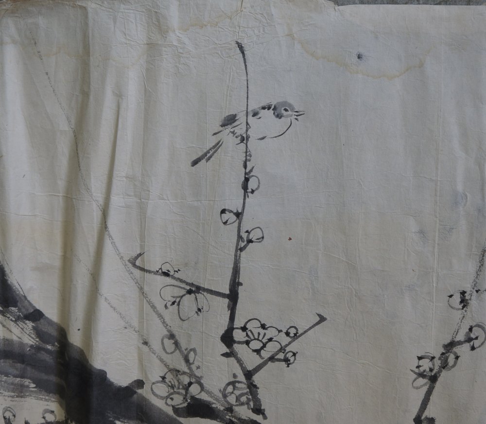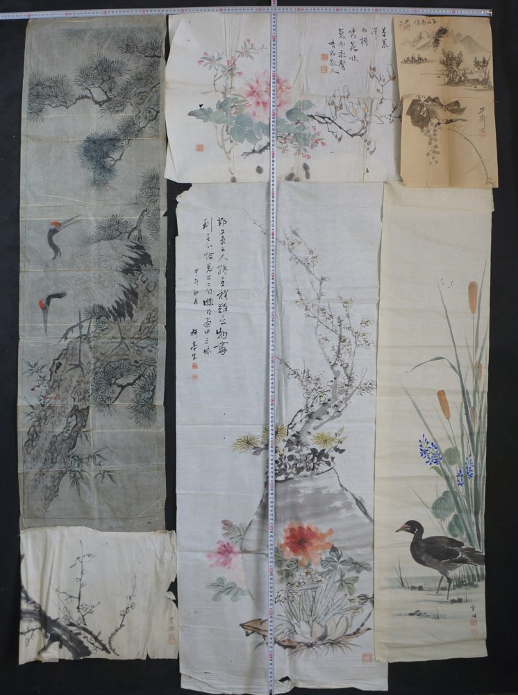 Antique Japan manuscript sketch, birds, landscape, still natures motif. Nice character and hand. Total of 6 Sumi-e and Fude brush paintings technique on Washi paper. Medium conditions,  wear from long usage and time, natural creases from antique folding. Item is in original conditions as it has been found.