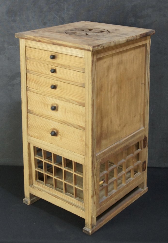 Antique Tansu Japan smoking cabinet furniture 1880 carpenter craft Kiri wood cabinet