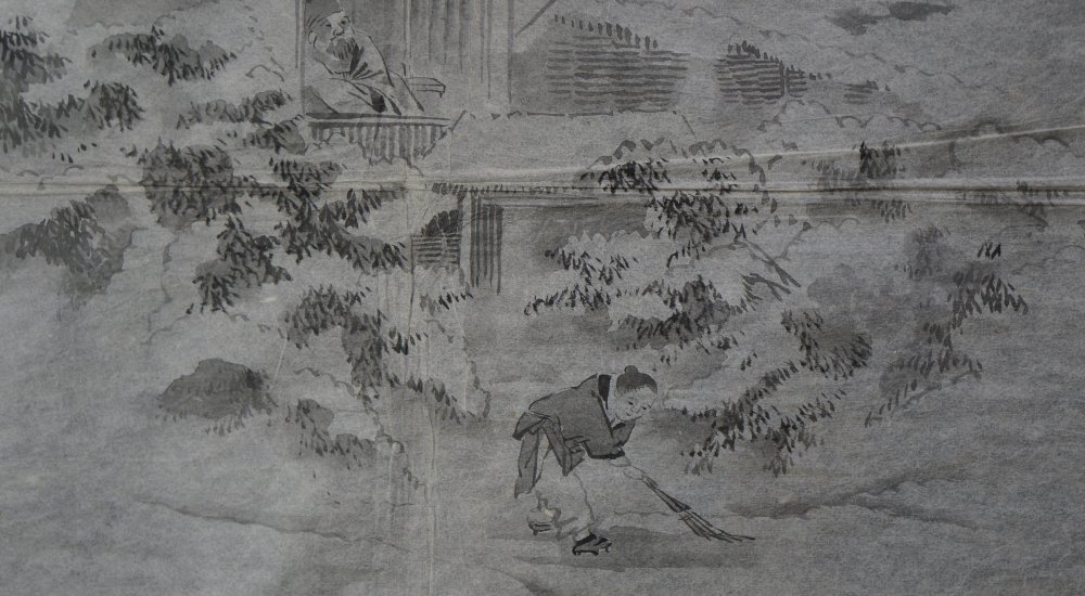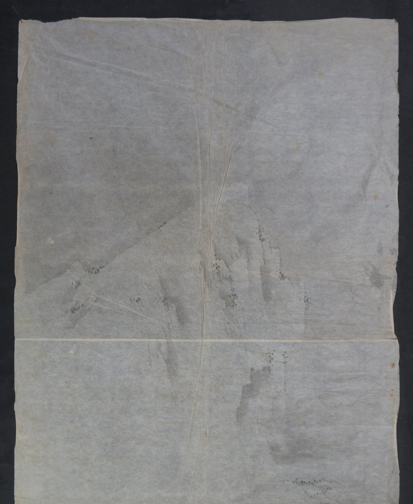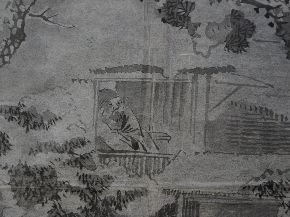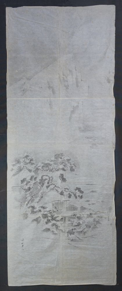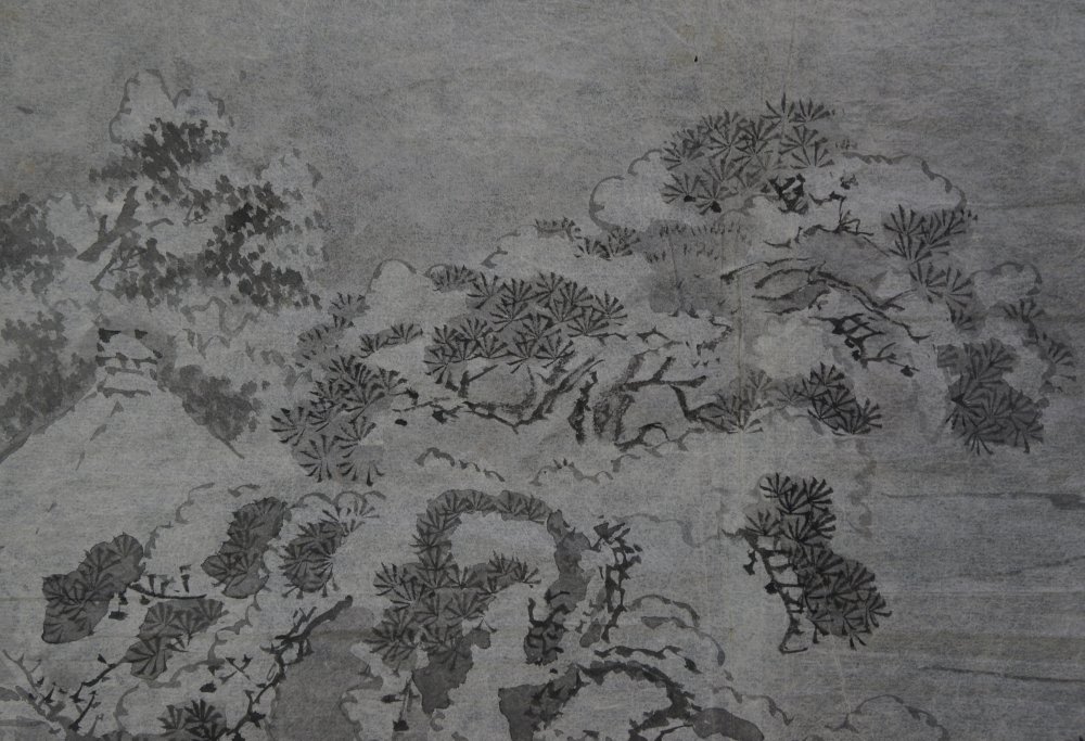Antique Japanese ink art mountain snow landscape Sumi-e technique hand painting sketch