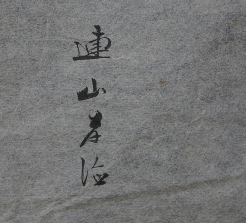Antique Japanese mountain snow landscape, Sumi-e sketch ink technique on paper painting, part of a sketch collection by Renzan Takaharu (連山孝治). Medium good conditions, some wear from time and usage. Immediately usable in its original conditions and folds.