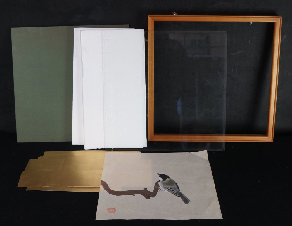 Minimalist bird Japanese watercolor sparrow 1900 hand craft