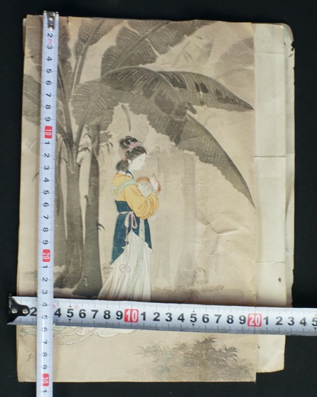Antique original Japanese wood block print, Miji - Taisho era, total of 3 papers, medium conditions, wear from time and handling. Nice decorative item.