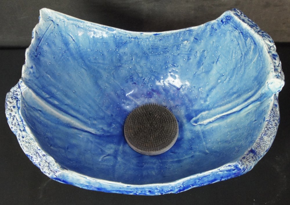Tajimi ceramic Japanese minimalist  Ikebana vase, very good conditions nice glazing, complete of metal Kenzan for floral compositions. Immediately usable with its protective wood box.