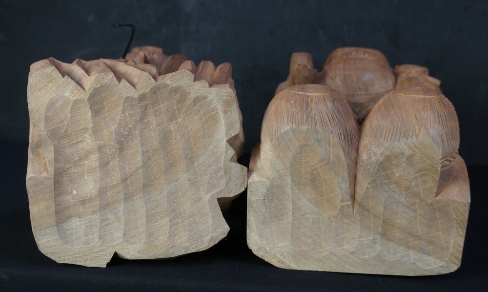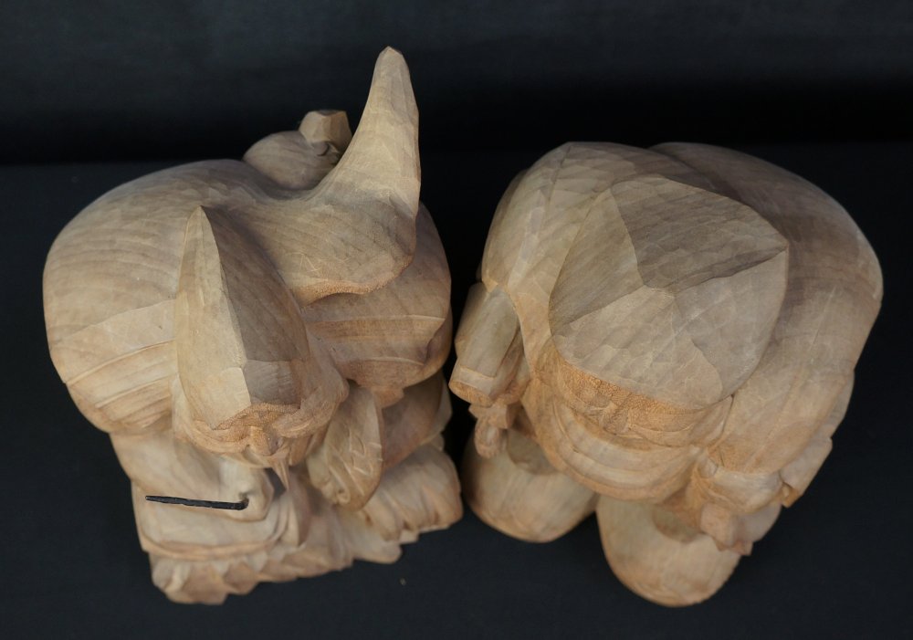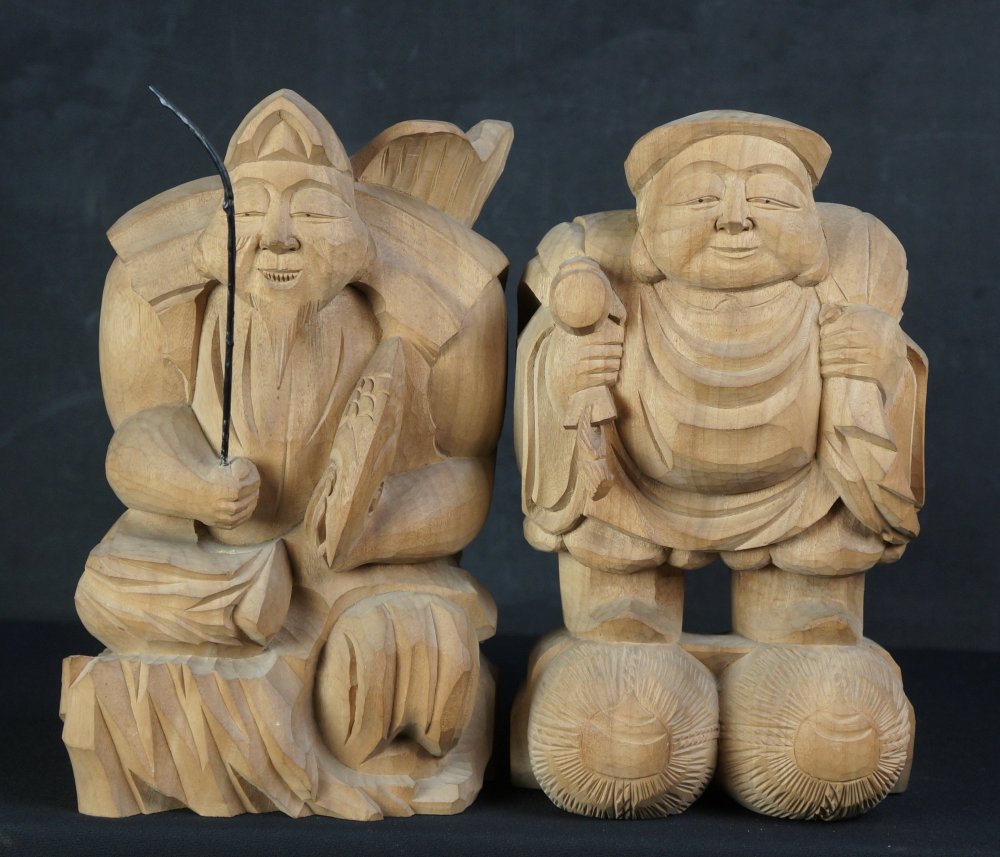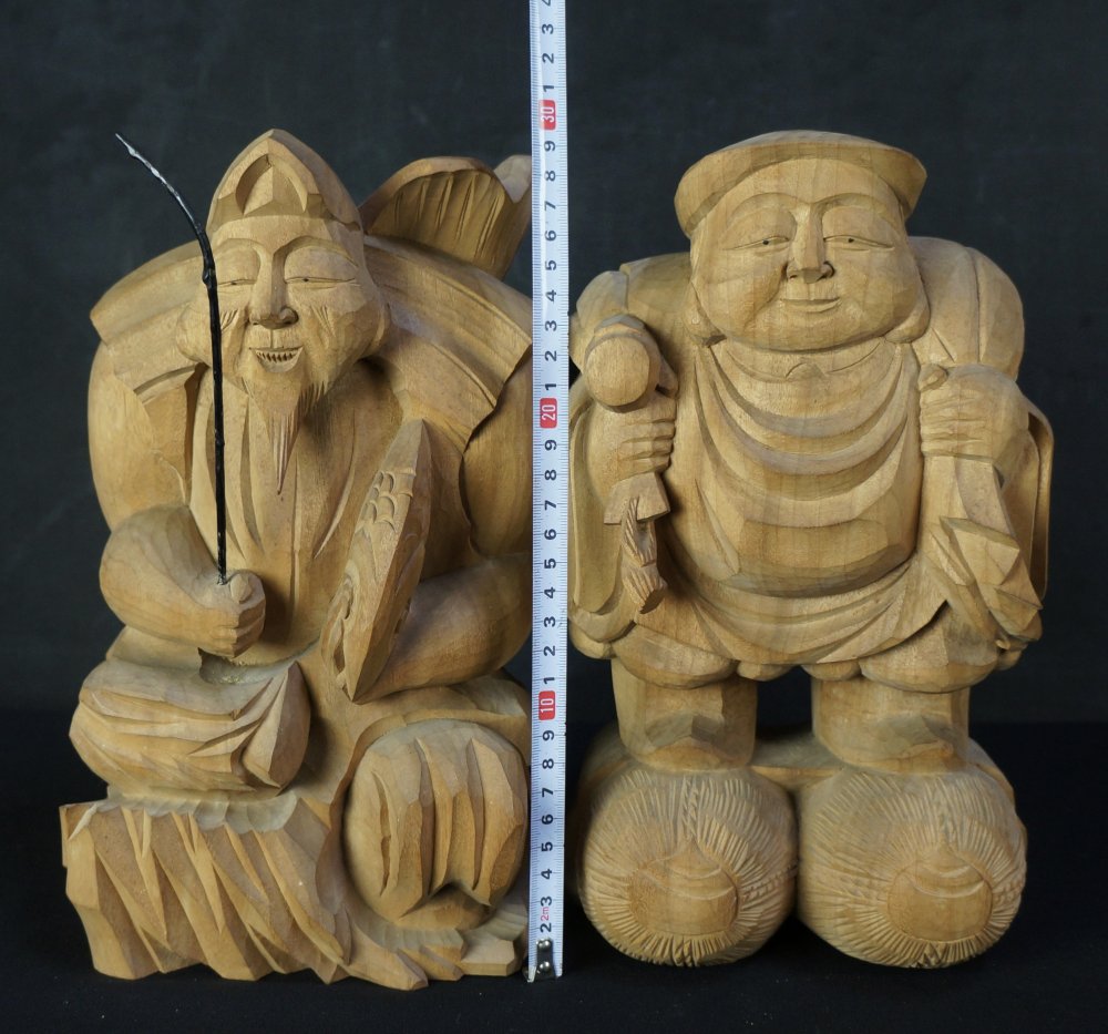 Japanese Shinto deity fortune gods Ebisu Dakoku rural craft sculpture 1950