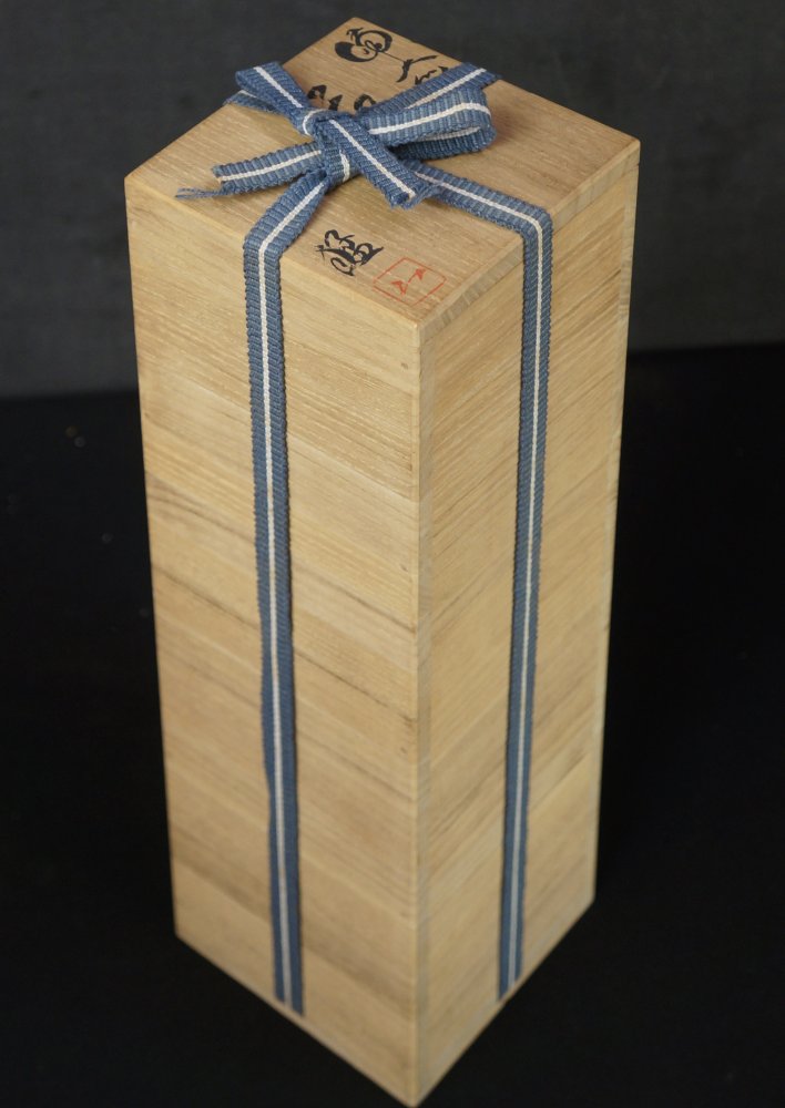Japanese minimalist Bizen ceramic Hanaire floral vase, very good conditions Kiln fire markings, makers seal and sign on protective wood box by Takeshi (猛). Immediately usable.