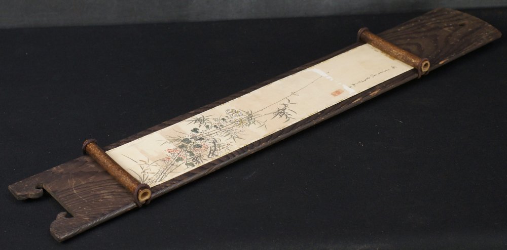 Antique Japan Wabisabi art Tanzaku miniature 1880 wood holder