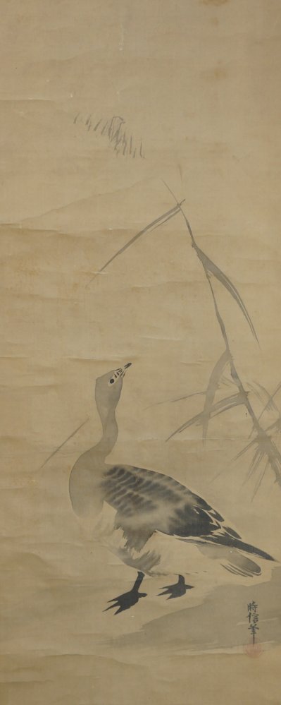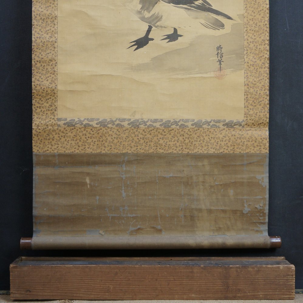 Antique Japanese scroll wild geese Sumi-e ink painting 1700 Tokinobu