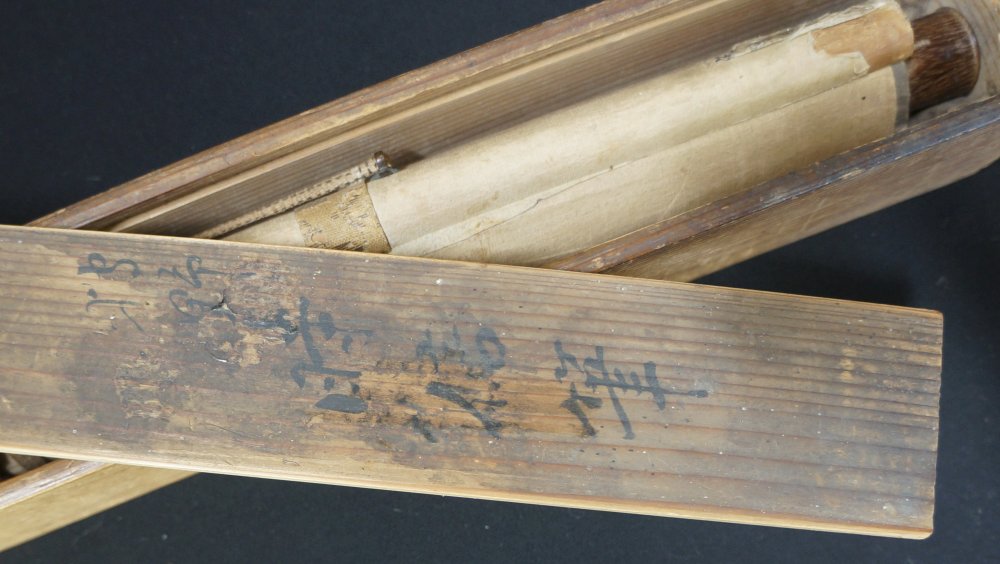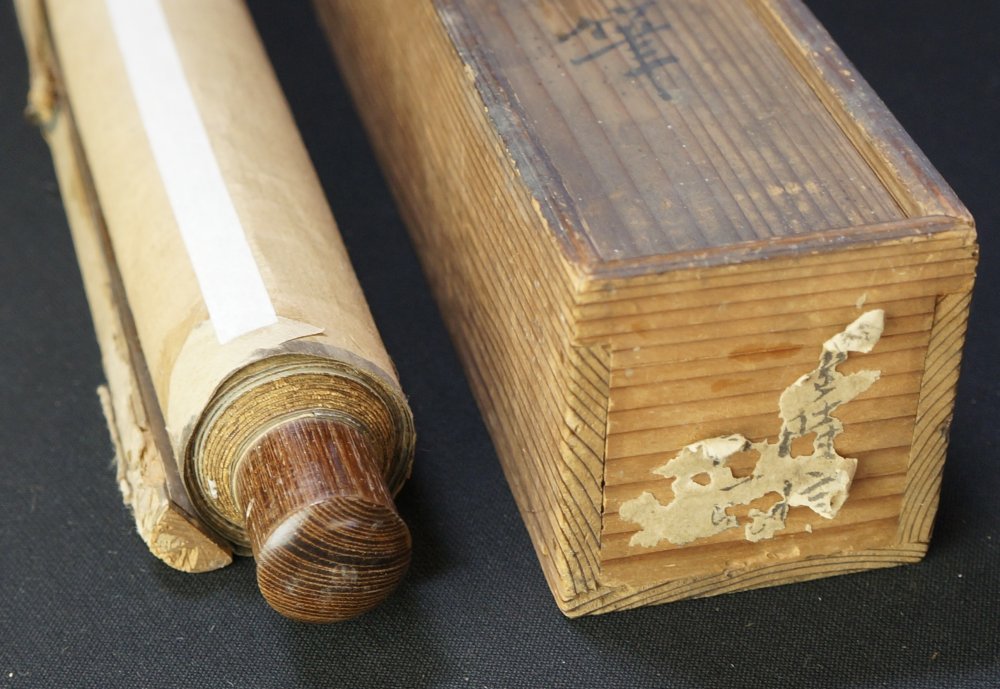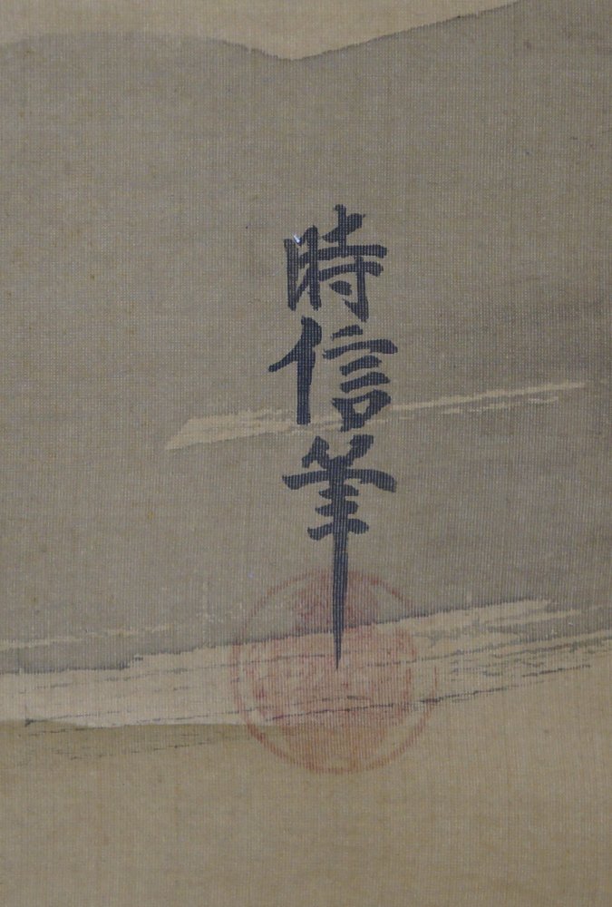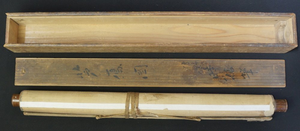 Antique Japan Sumi-e ink art winter wild geese, signed and dated by Kano Tokinobu (時信 1642–1678) (school of). Nice hand, Sumi-e ink and Fude technique. Medium conditions, some wear from long use and exposure, old restorations visible on the back. Immediately usable with original protective wood case, to be handled with care.