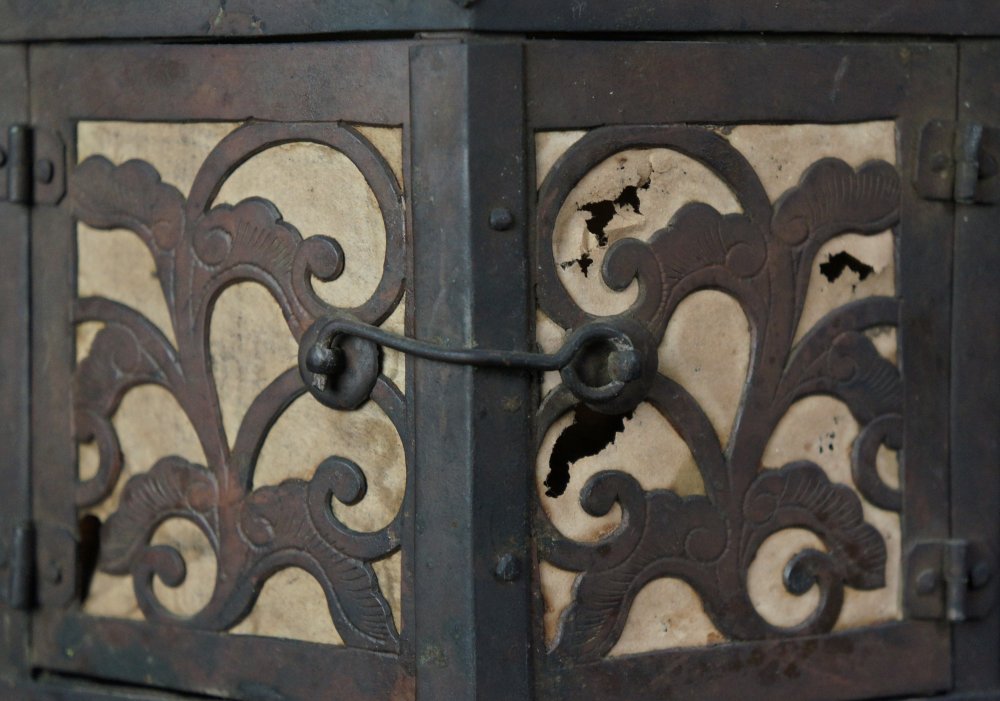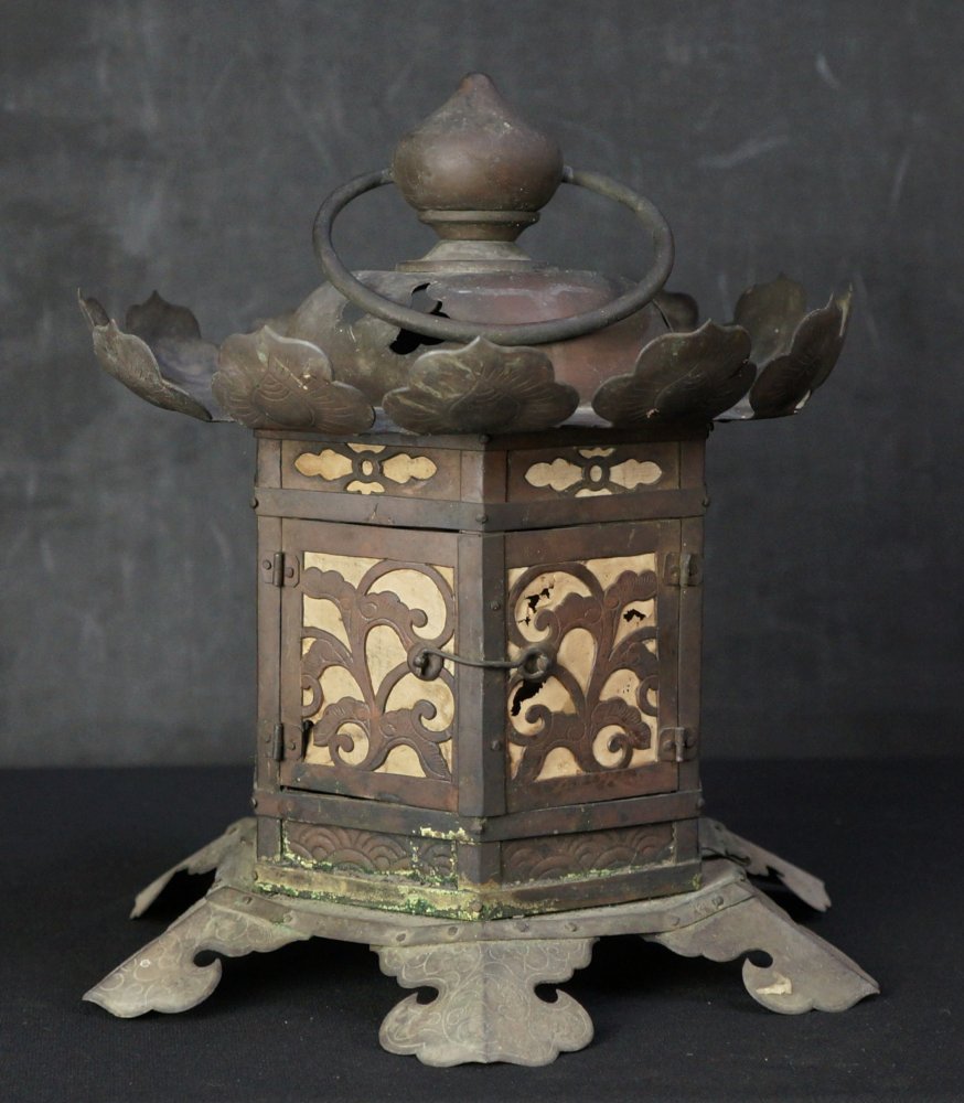 Antique Japanese Buddhist lantern Tsuridoro temple lamp 1835 bronze craft
