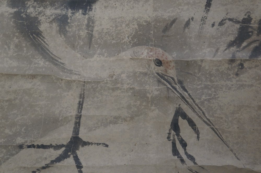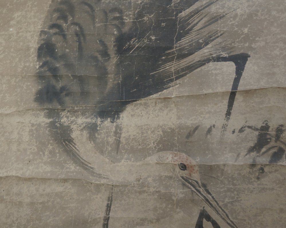 Antique Japanese Tsuru bird Kakejiku scroll 1700 watercolor fine Washi art