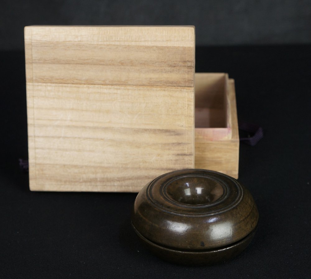 Antique Japan bronze hand made horse bell, nice patina and shape, high pitch sound, some wear from long usage and time. Immediately usable with protective wood box.