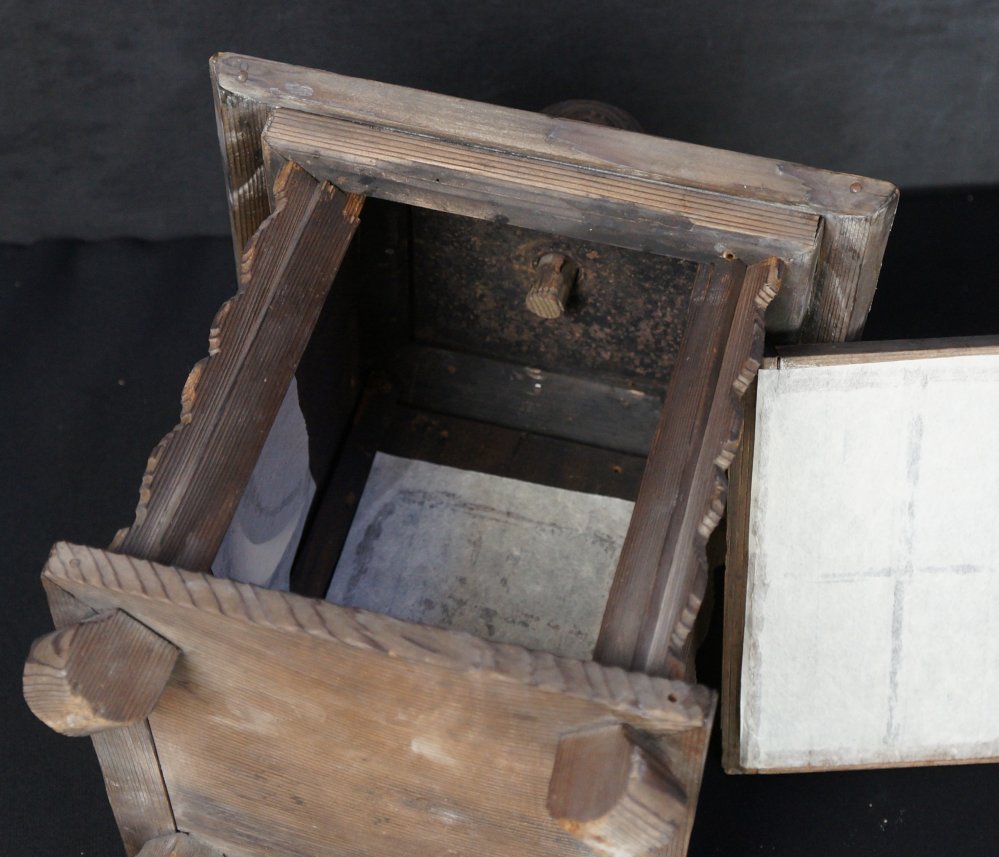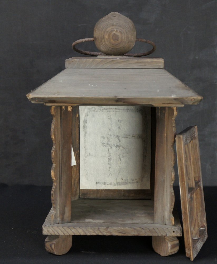 Wabisabi Japanese lantern Teandon for garden use. Light and simple wood structure, medium good conditions, wear from time and long usage, recent restored paper. Japanese architecture design, immediately usable.