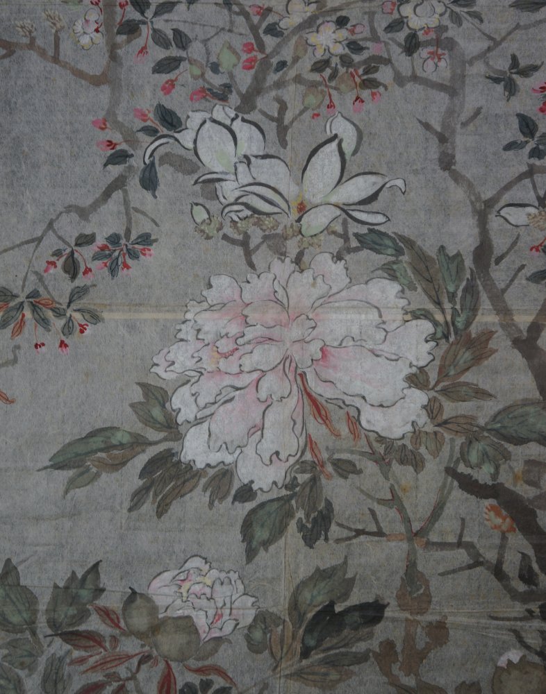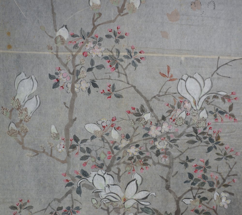 Antique Japanese ink art wild flowers 1800 Sumi-e watercolor technique sketch