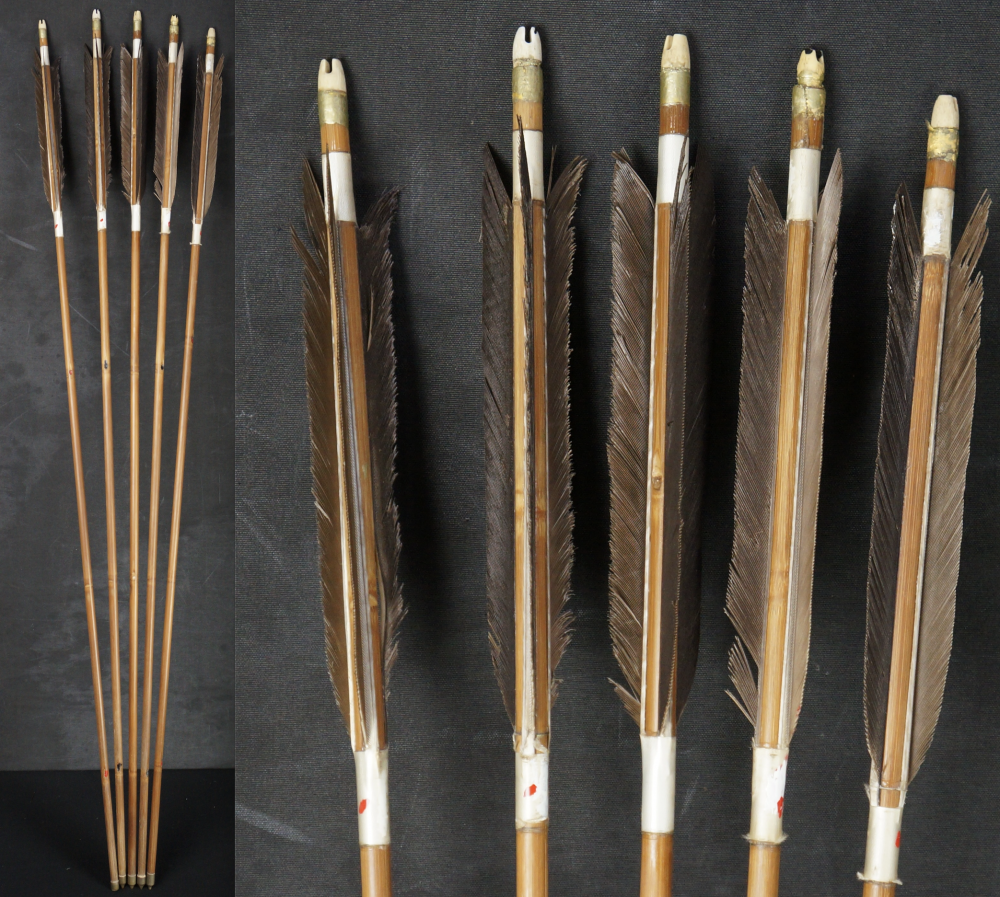 Japanese antique Ya arrow Kyudo archery art 1900 hand craft total of 5