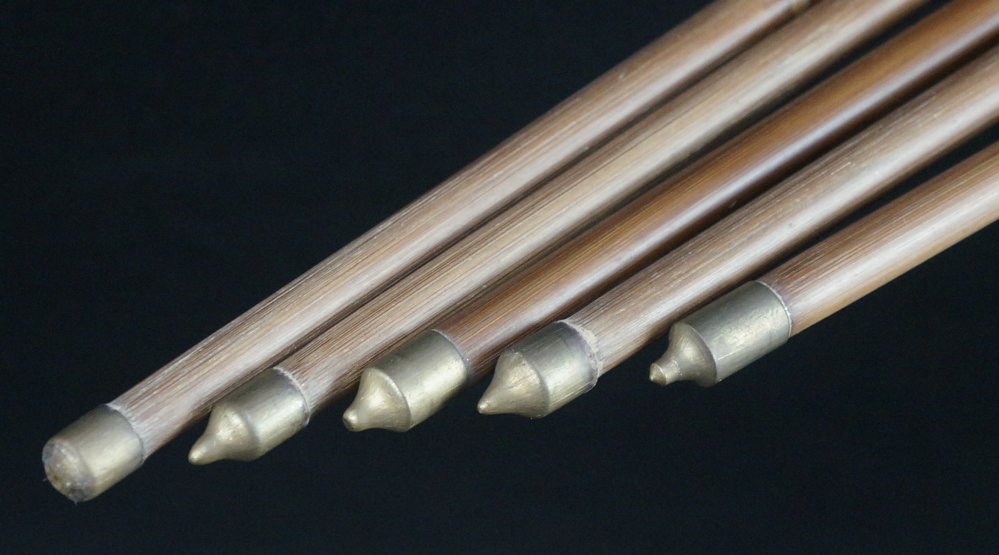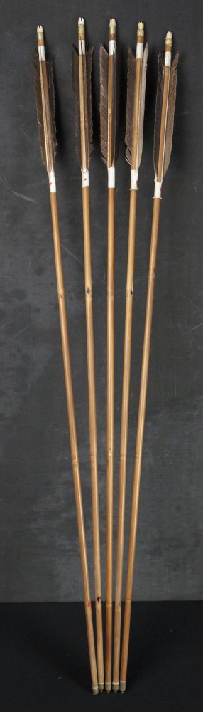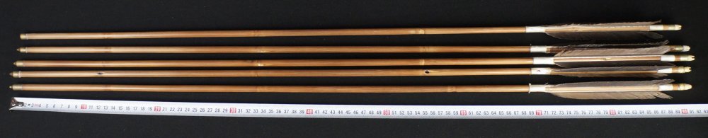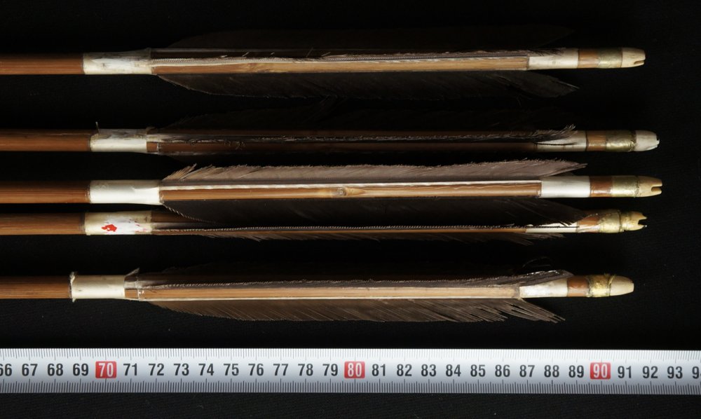 Japanese Ya arrow set of 5, hand made from bamboo shaft and feathers. Medium conditions, some wear from time and long usage, to be used ans antique/vintage item, fine Japanese craft.