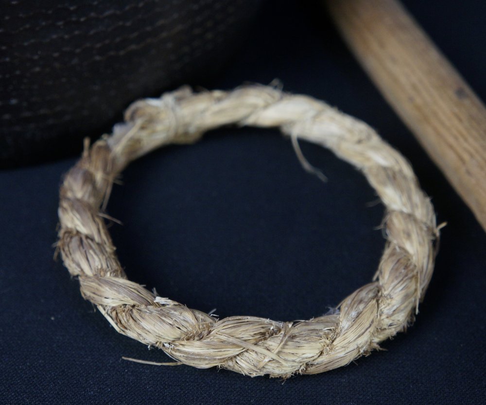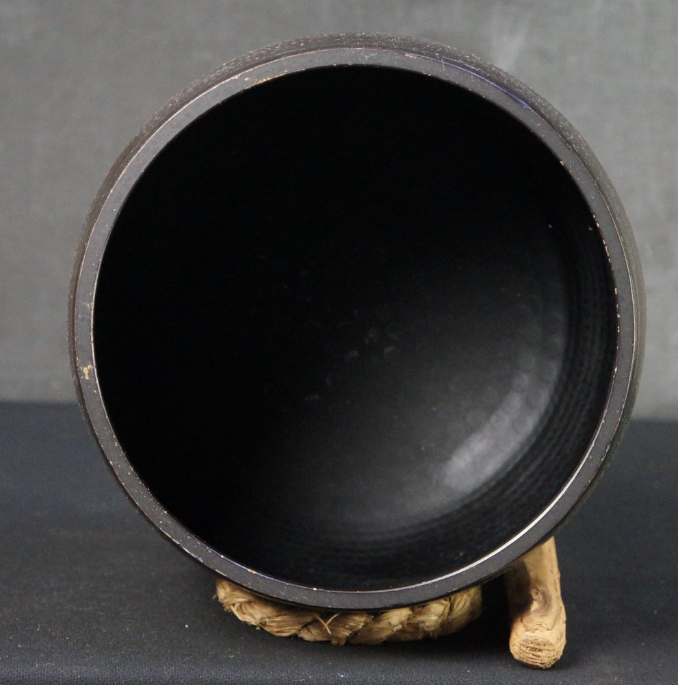 Japanese Buddhist chanting bell for Buddhist shrine, very nice sound and conditions, light wear marks from usage and time. Nice hammered surface, item comes with rope base and wood Bachi hitter. Nice long sound, immediately usable, nice character.